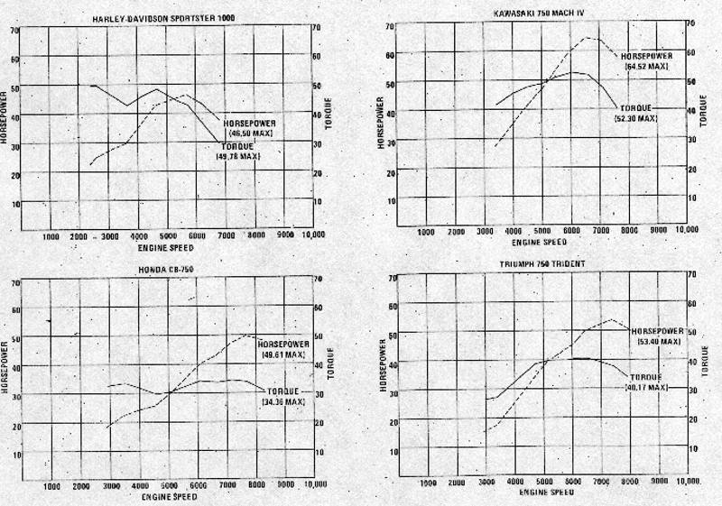 If all of these considerations are kept in mind the dynamometer figures are intriguing insofar as they provide absolutes as to maximum torque and horsepower; they reinforce the drag strip figures; and they can give you an indication about any given motorcycle’s street performance.