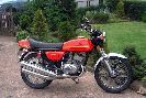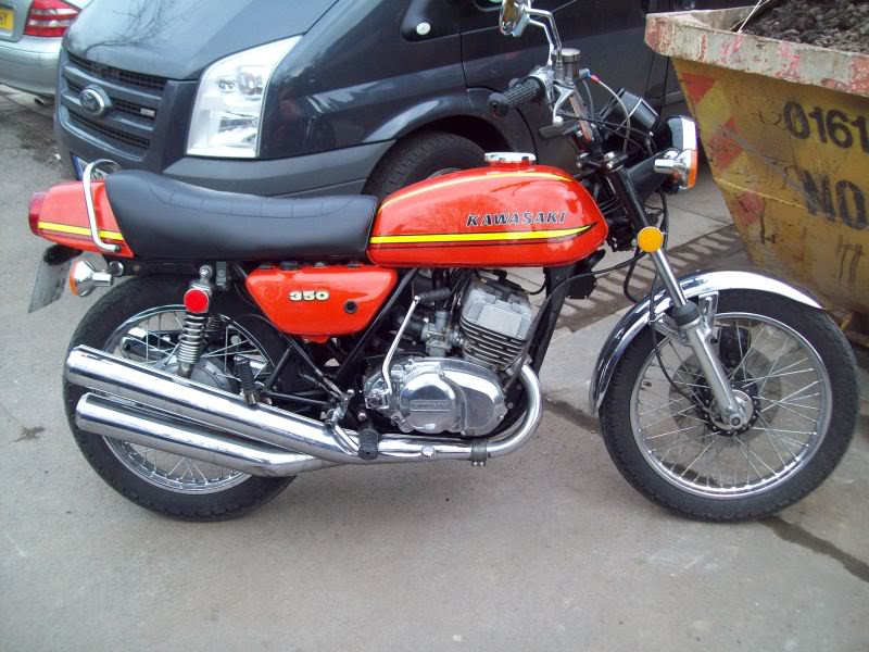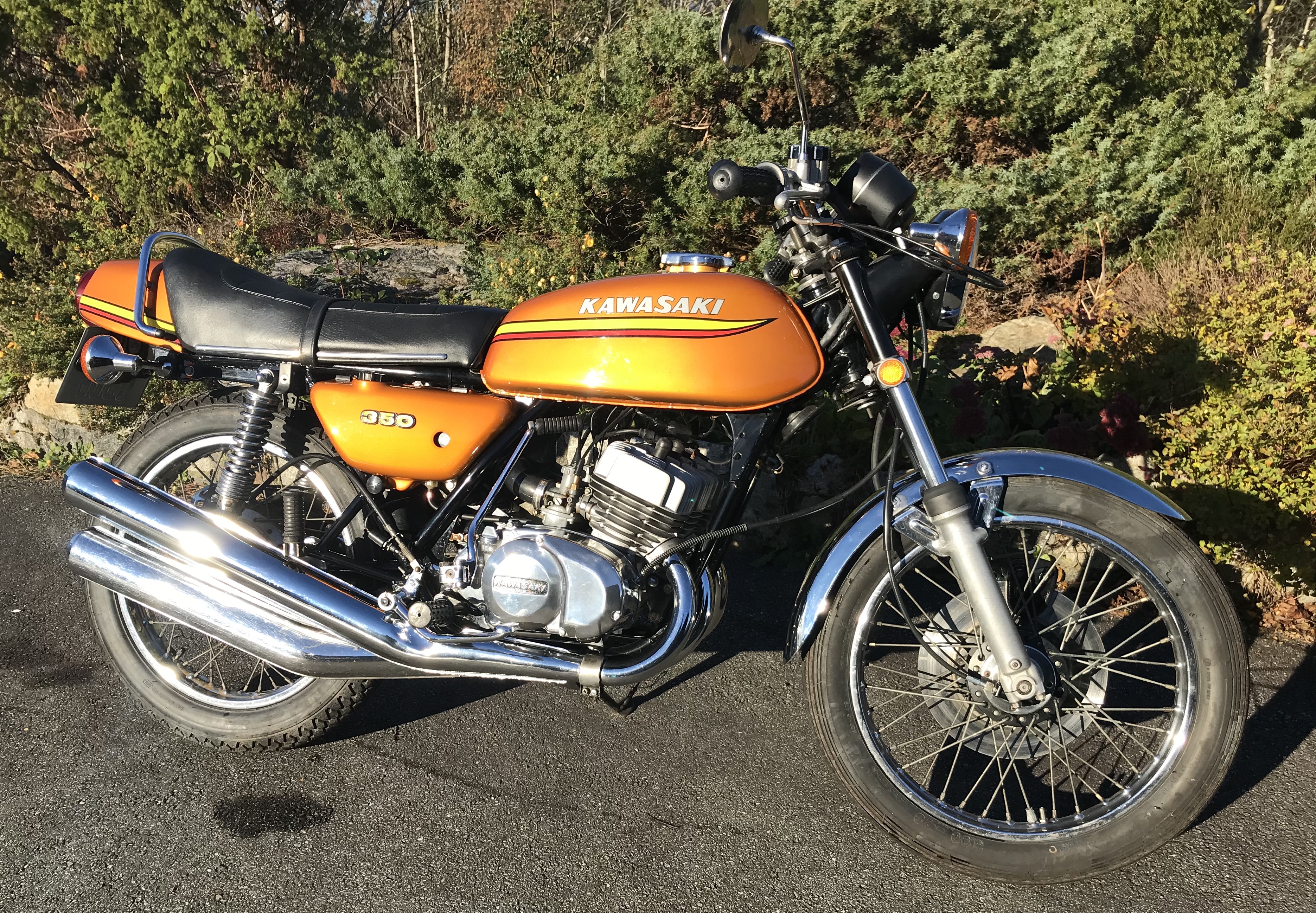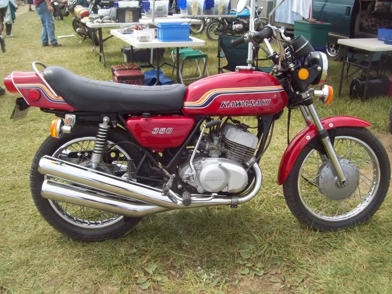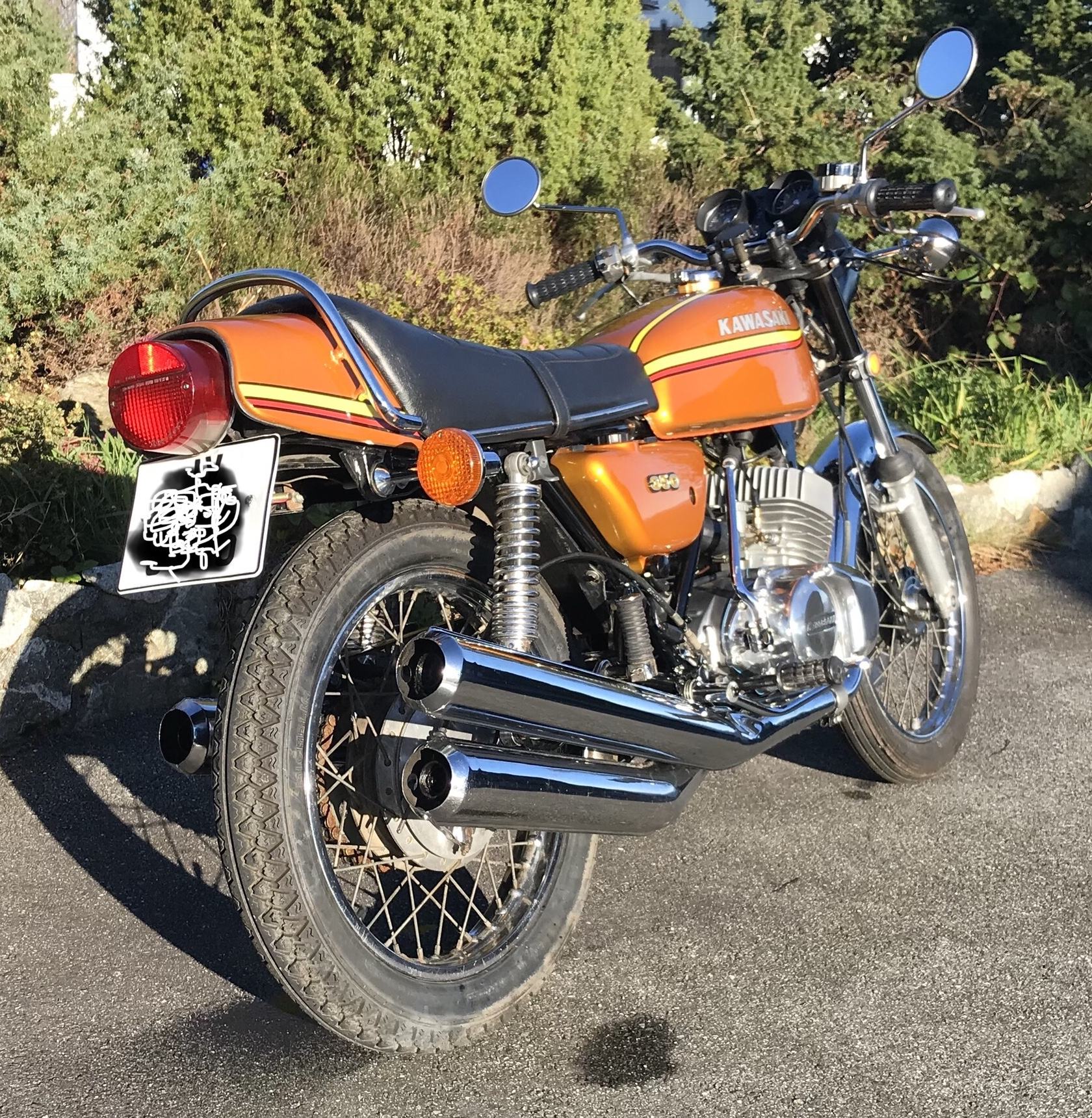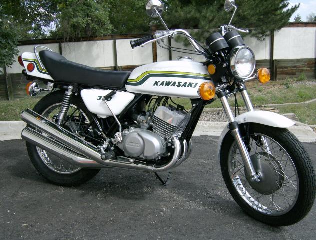 The 350 was the shortest lived triple, and had a reputation for squirrely handling and peaky power output. At 44 HP it actually made two horsepower more than the later S3 400. It was virtually identical to the 250 model except for coloring and the top end of the motor. A common hop-up trick in the early days was to replace the top end of a 250 with one from the 350.