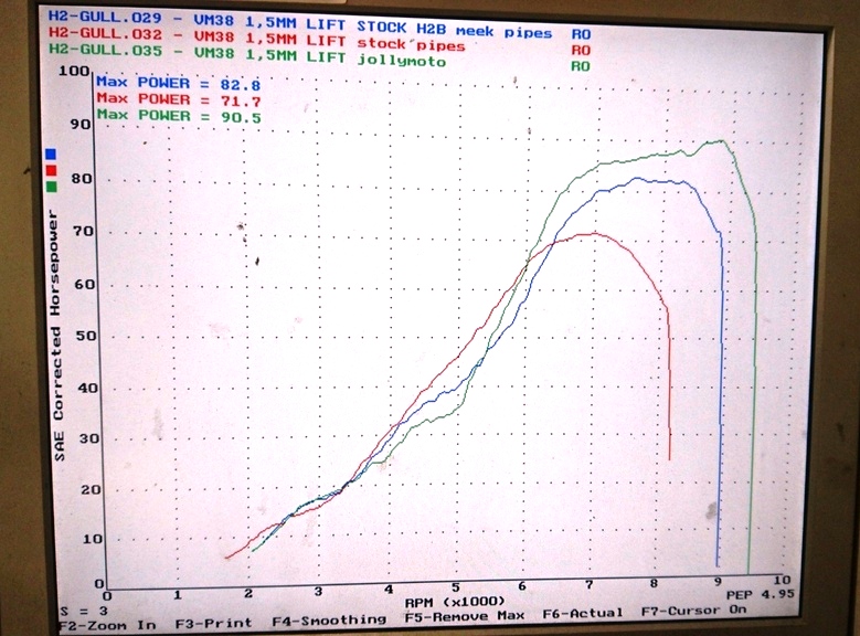 completely different pipes dynoed together with stock 71mm h2b cylinders.