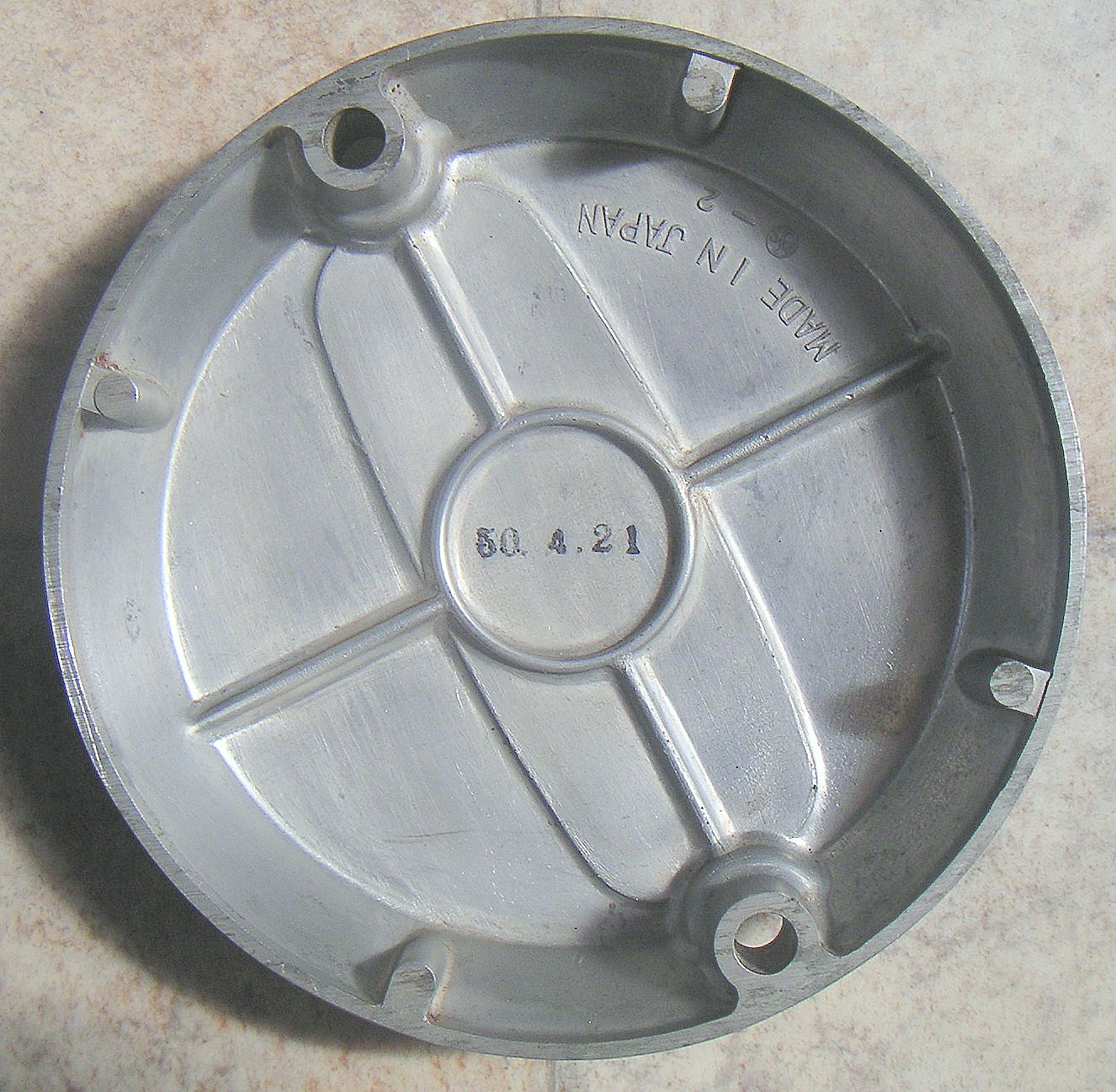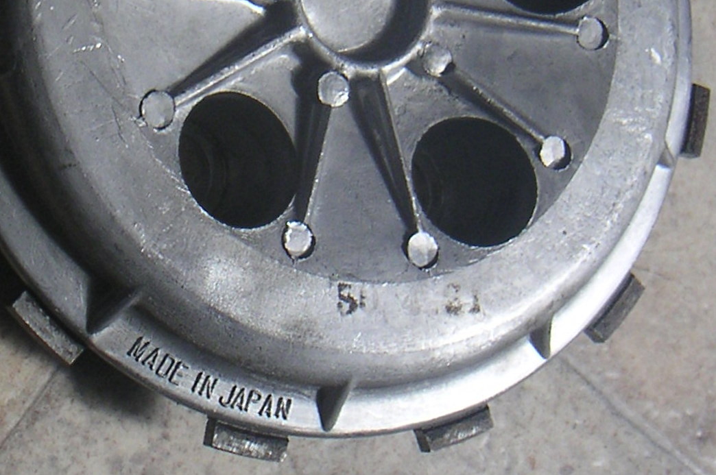 Interesting to see that the Points cover and Clutch plate (from the same bike) were both made on the same day, ie 21st April 1975, while the sprocket carrier (below), also from the same bike, was made about 3 or so weeks later,