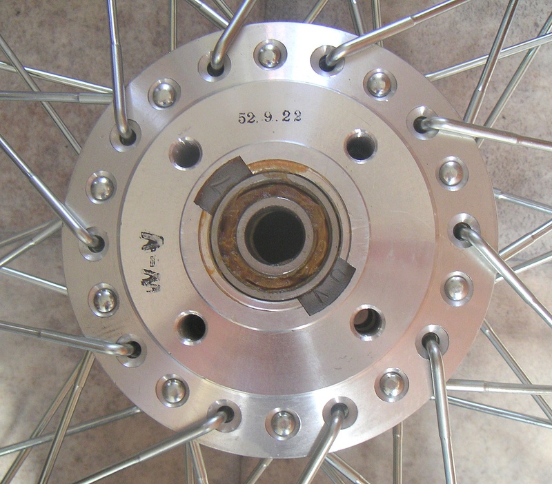 These were ink stamped on completion with the full date of manufacture in Showa style. This NOS front hub for a Z900/ Z750 Four was made on 22nd September 1977, while the rear hub was made on 20th December 1974.