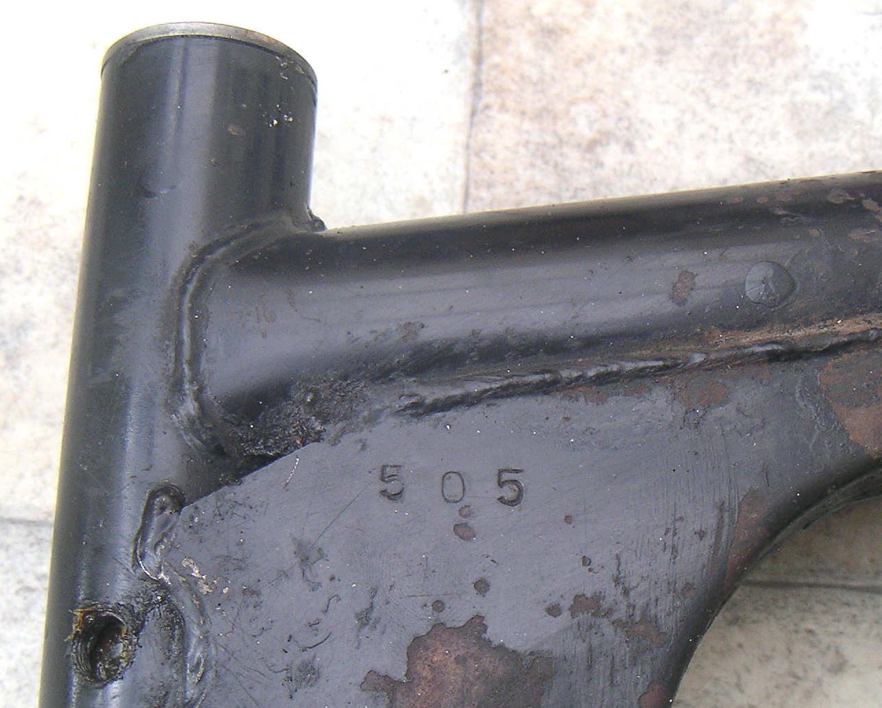 On the back side of the Torque Arm is the number which follows the same procedure as the swing arm (although the month number is only 1 digit for Jan to Sept). For example: 3 6 would be June 1973. This torque arm is ‘5 5’ which like the Swing Arm would be May 1975.
