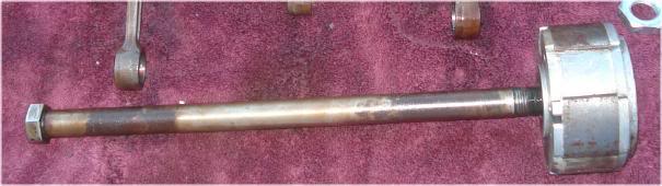 Tech tip: Since H2 magneto rotor pullers are not available, and I could not find a 10 x 1.25 x 110mm screw to fashion into a puller, I made one 1.25 x 35mm screw and a piece of 1/4" rod as follows: